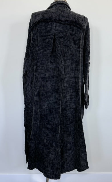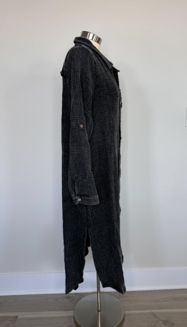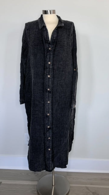 Acid Wash Black Gauze Button Dress