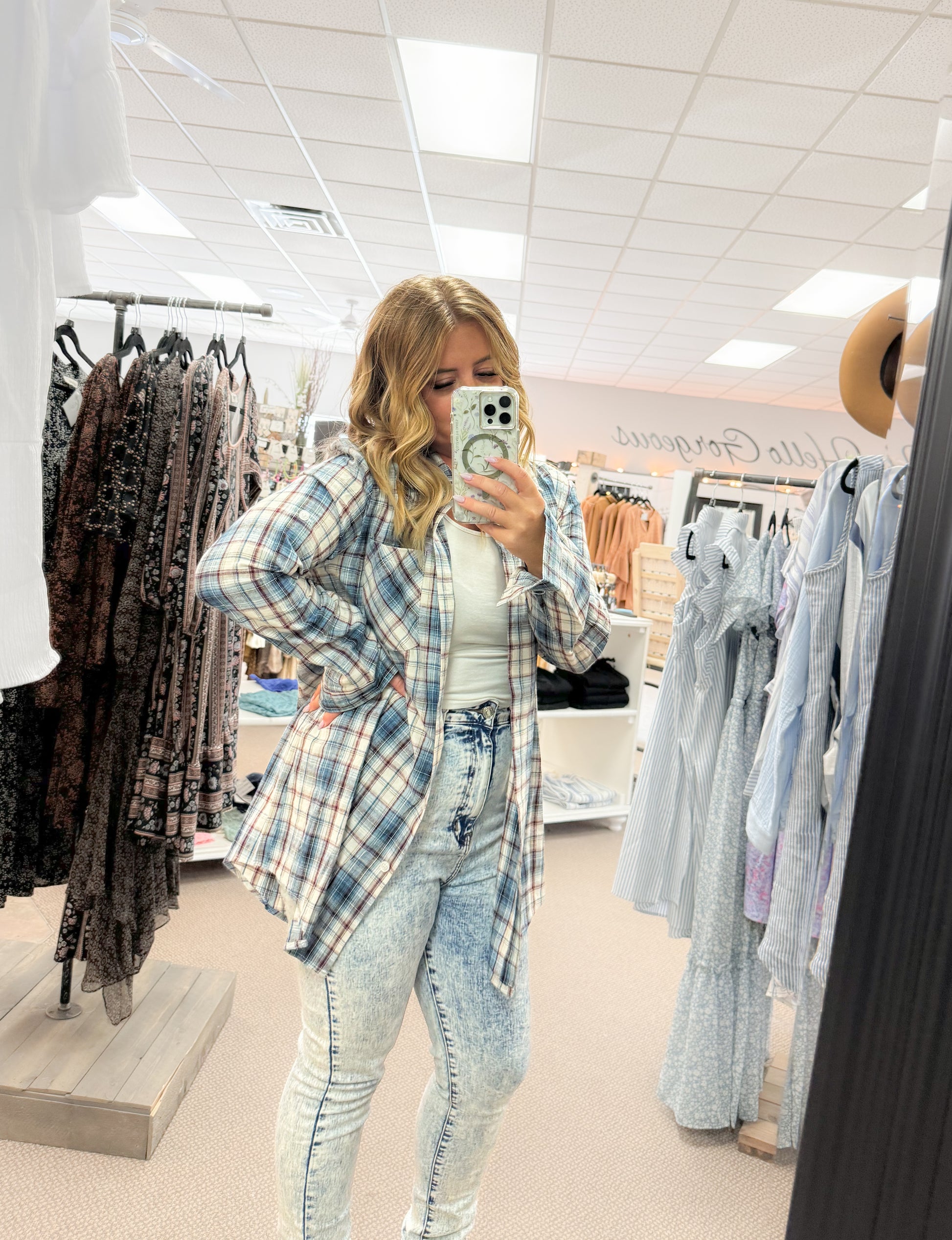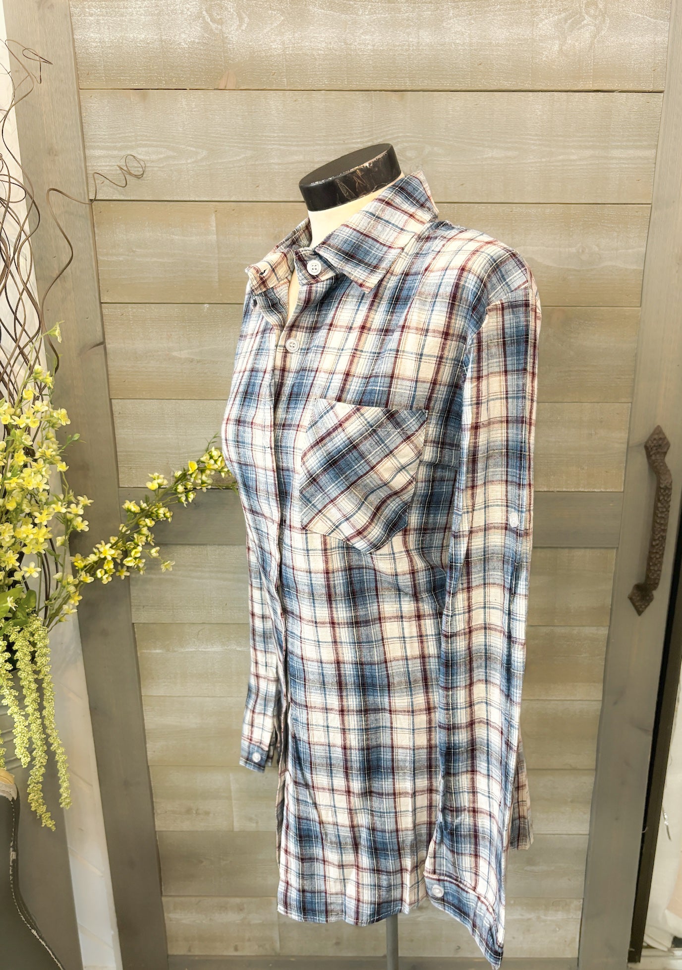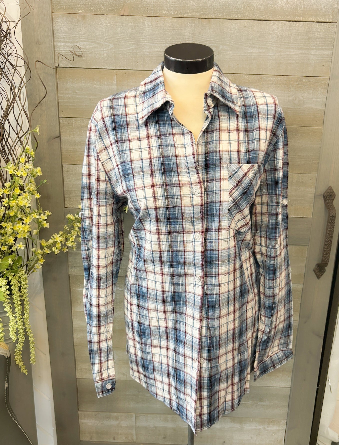 Blue White Plaid Button Down
