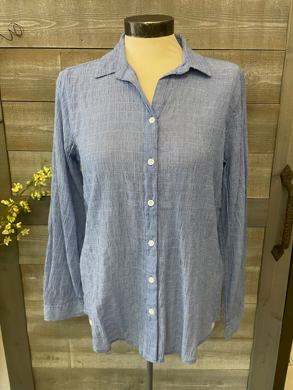 Crinkle Linen Blue Beach Long Sleeve