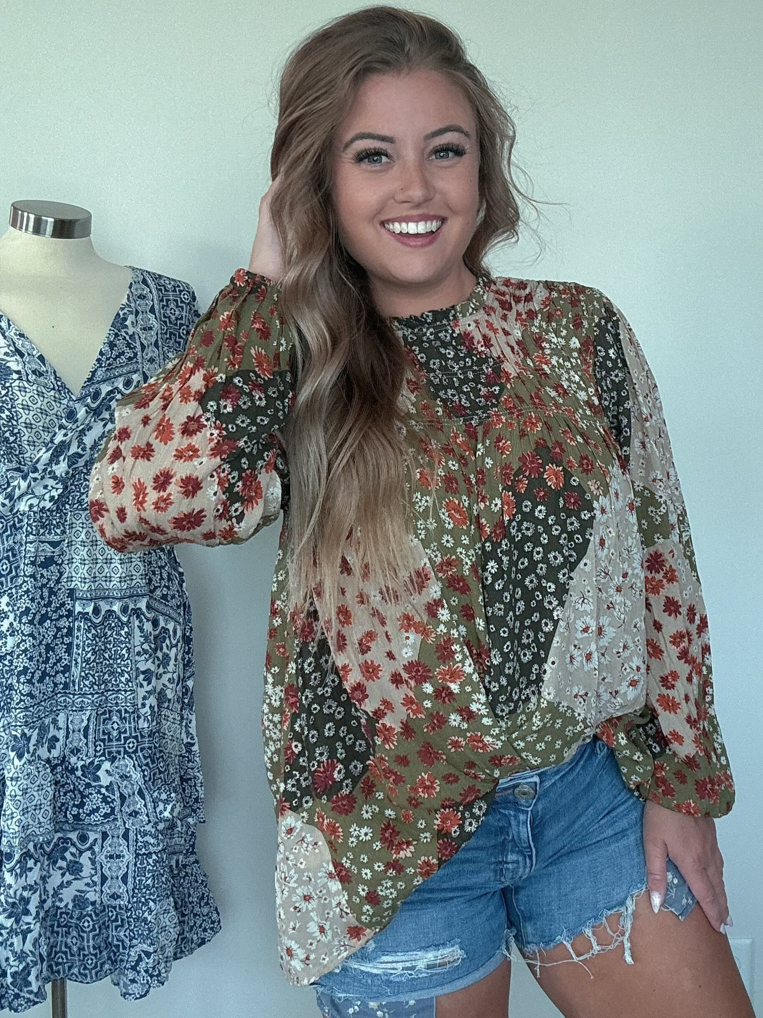 Long Sleeve Floral Patch Blouse