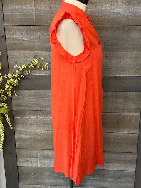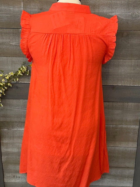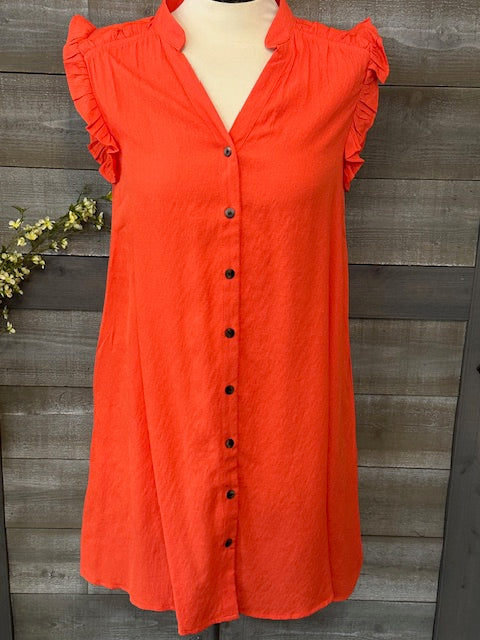 Orange Button Down Flutter Sleeve Dress