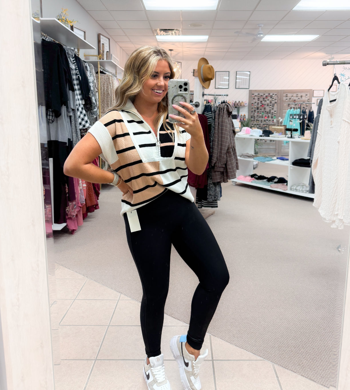Stripe Colorblock Quarter Zip Collar Sweater Vest