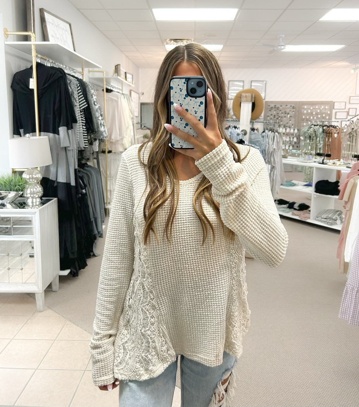 Waffle Side Lace Sweater